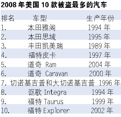 据美国FBI(联邦调查局)统计显示,2008年美国的汽车失窃率比2007年低了10%。而NICB国家保险犯罪局称,此数据是美国近20年以来最低的。佛山租车 佛山禅威 www.real-world-spanish.com